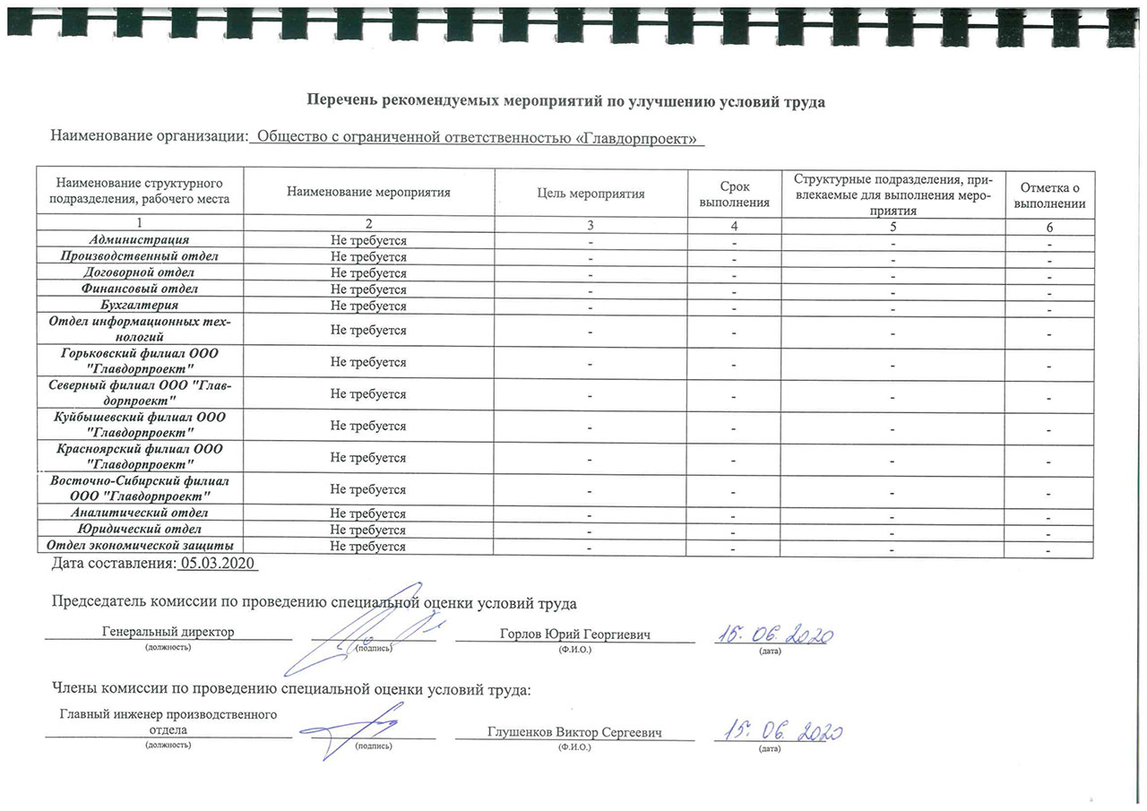 Перечень рекомендуемых мероприятий по улучшению условий труда
