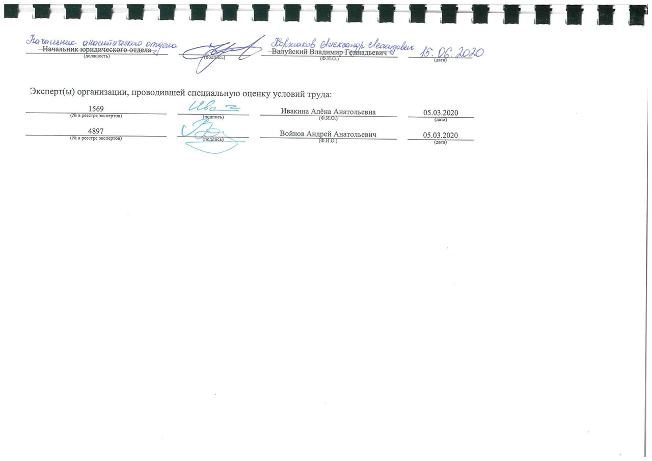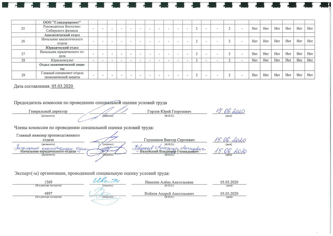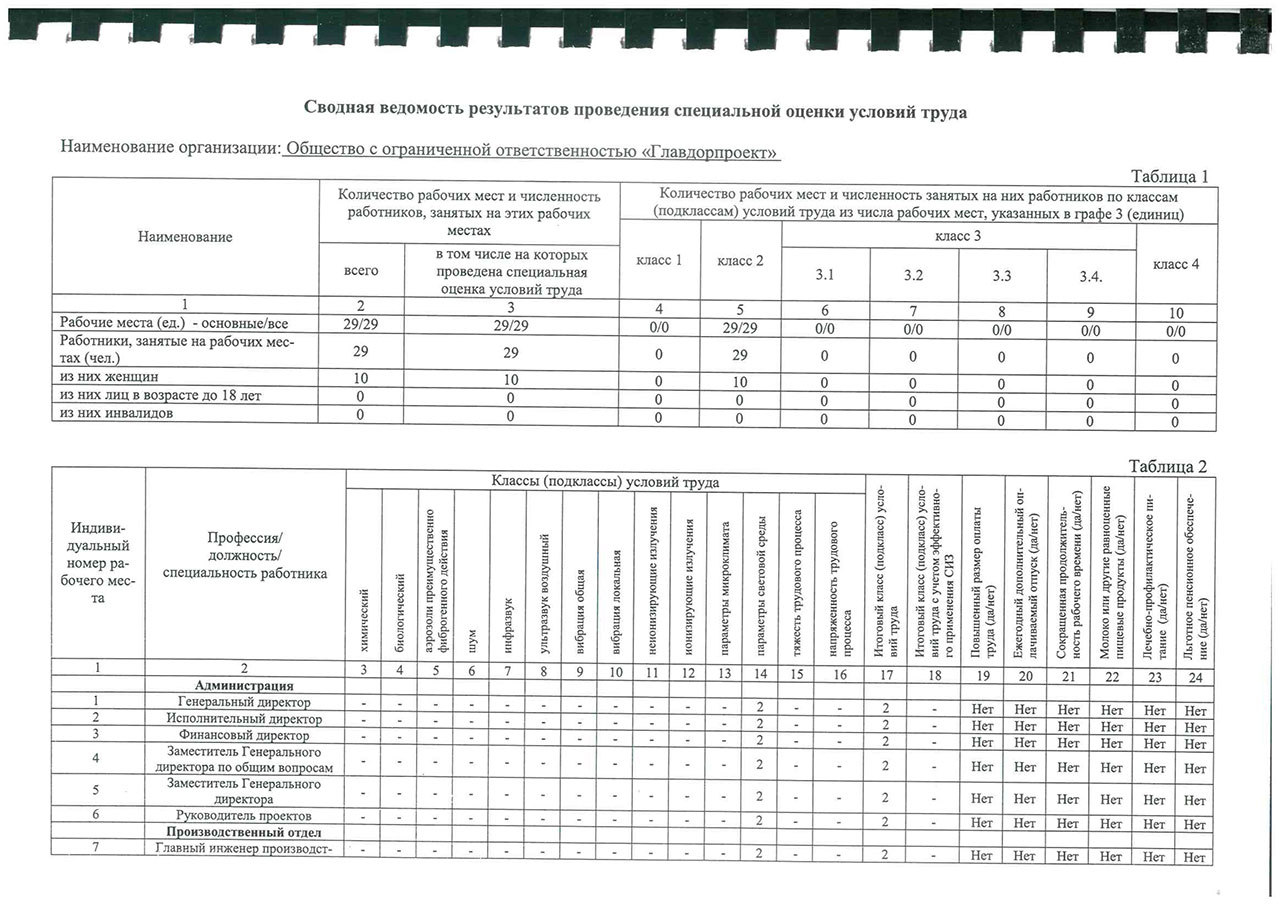 Сводная ведомость результатов проведения специальной оценки условий труда